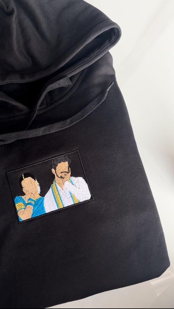 Custom Vijay x Trisha on our black sweater